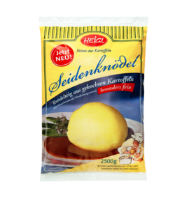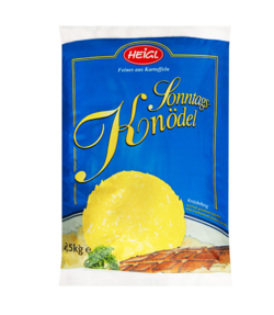 Unsere vorgeformten Fertigknödel mit eingebetteten gerösteten Croutons in verbrauchergerechten Größen von 90 g und 180 g liefern wir unseren Kunden portioniert in Kunststoffschalen, lebensmittelgerecht beschichteten Zwischenlagen im stabilen HEIGL-Umkarton. Frisch verarbeitete sortenreine Qualitätskartoffeln aus kontrolliertem Anbau sorgen für appetitliche Optik und einen herzhaften Geschmack, den Sie nur bei HEIGLs Kartoffelteig- Rezepturen finden.
